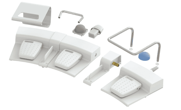 Toujours en avance sur ses concurrents, HERGA présente une solution de pédale double aux couleur médicales avec en option des fonctions supplémentaires grâce aux boutons poussoir paramétrables.
